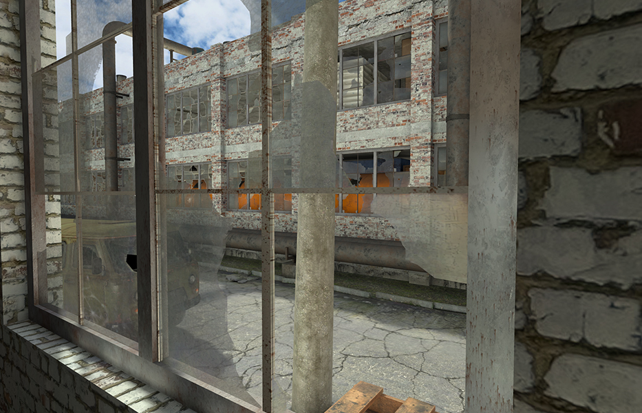 Карта предлагает динамичные бои в индустриальных руинах старой фабрики: высокая плотность укрытий, сложная вертикальность и ограниченная видимость заставляют играть агрессивно и осмотрительно.