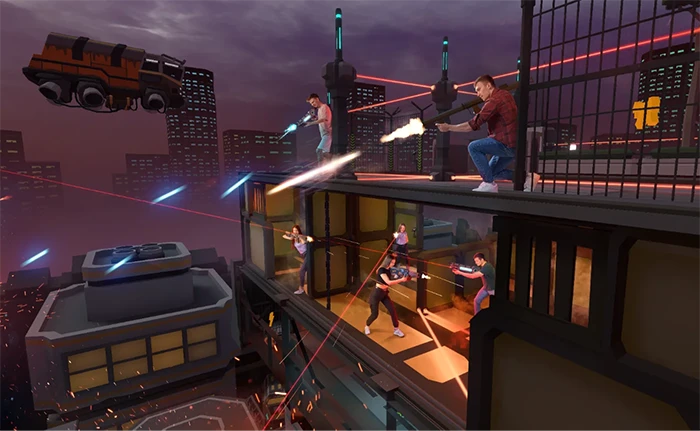 Захватывайте базу и разрушайте постройки. Перемещайтесь между площадками и используйте автобус как укрытие. Оттачивайте меткость и реакцию. Почувствуйте атмосферу веселья и станьте чемпионом в незабываемом VR-приключении!